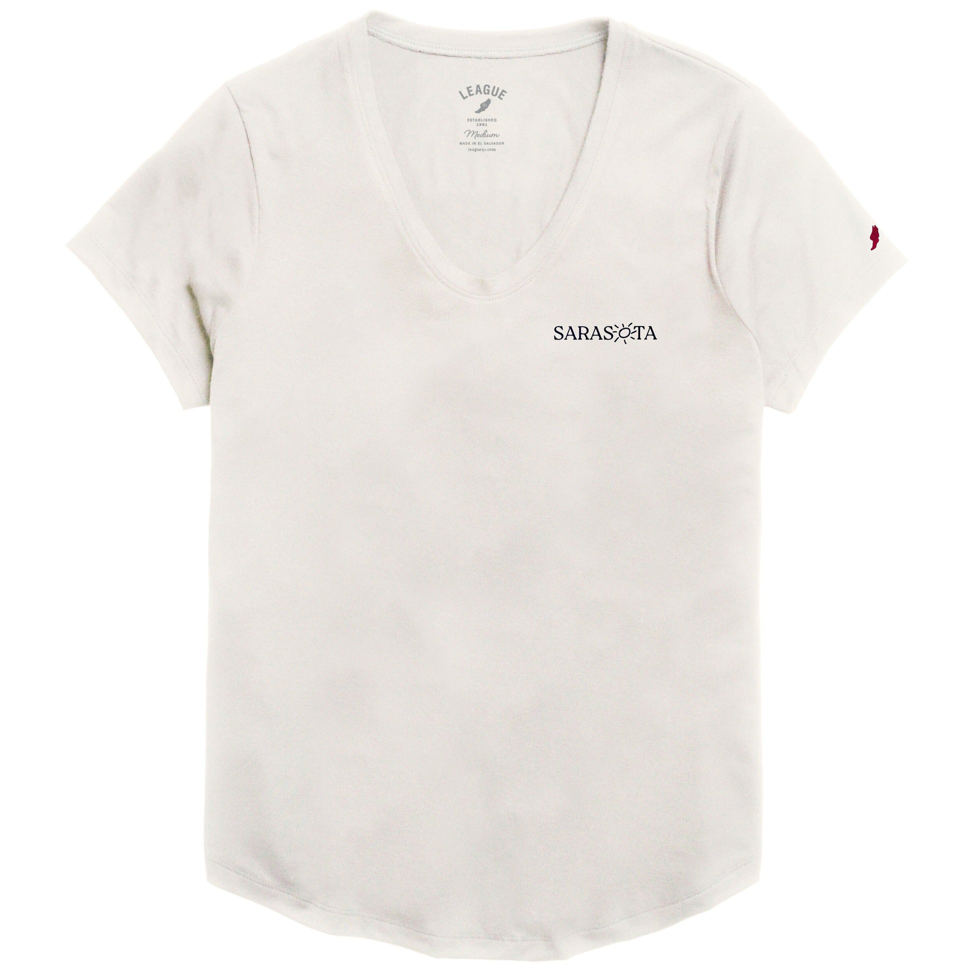 The Sarasota Tri Voop Tee is inspired by everyday athleisure and utilizes a breathable blend of polyester, spandex, and rayon to give this tee an ultra-soft feel and flattering drape. This tee is the ideal hybrid between the classic V-neck and scoop-neck design.